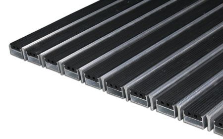 2000 Jupiter series entrance mats with rubber inserts are designed for outdoors. EPDM rubber strips on anodized aluminum profiles scrape dirt and dust and provide a long life under high traffic conditions. Dirt debris removed from the shoe soles are trapped between the profiles and can be easily cleaned. Jupiter models are ideal for airports, shopping malls, hospitals, supermarkets, office buildings and high traffic areas. Rubber strips can be combined with brush strips for even higher scraping effect.