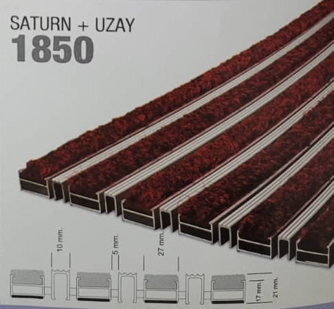 1000 Saturn series are ideal second stage entrance mats. Needlepunch textile strips specially produced for Saturn are perfect for removing fine dirt and moisture, while high absorption characteristics make this an ideal indoor mat for high traffic areas. Textile strips can be combined with rubber or brush strips for extra scraping effect.