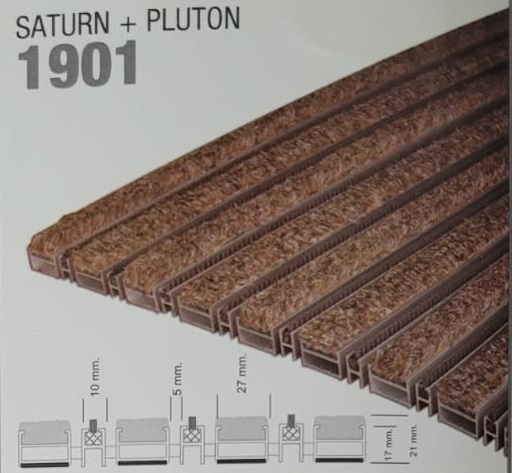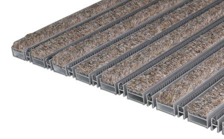 1000 Saturn series are ideal second stage entrance mats. Needlepunch textile strips specially produced for Saturn are perfect for removing fine dirt and moisture, while high absorption characteristics make this an ideal indoor mat for high traffic areas. Textile strips can be combined with rubber or brush strips for extra scraping effect.
