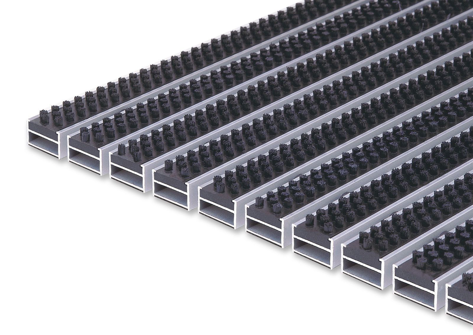 4000 Uranus series are very high performance and durable brush mats with PA6 nylon bristles on aluminum profiles. Hard bristles remove most of the dirt from shoe soles making a perfect first stage solution. Dirt debris removed from the shoe soles are trapped between the profiles and can be easily cleaned. Uranus models are ideal for airports, shopping malls, hospitals, supermarkets, office buildings and high traffic areas. Brush strips can be combined with rubber strips for outdoors or textile strips for indoors.